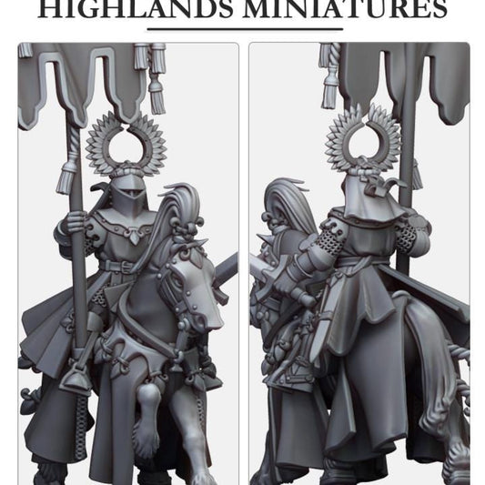 Battle Standard Bearer on Horse with Banner Highland Miniatures Hero Various Scales (US tariffs are pre-paid by us)