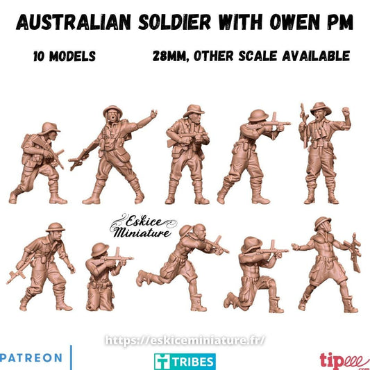 WWII Australian Infantry Squad with Owen SMG Squad (10 models) Various Scales Historical Wargaming (US tariffs are pre-paid by us)
