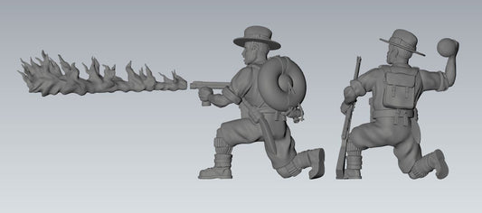 WWII British 8th Army Assault Engineers Flamethrower Team (2 models) Various Scales Historical Wargaming (US tariffs are pre-paid by us)
