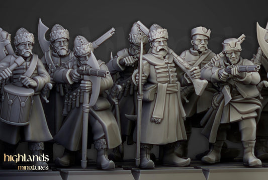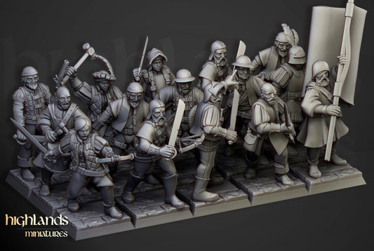 Sunland Militia with Command Group 10 multipart models Highland Miniatures Various Scales (US tariffs are pre-paid by us)