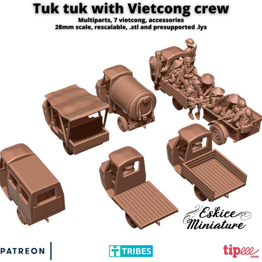 Vietnam War Tuk Tuk with Vietcong crew (Set of 7) Various Scales Historical Wargaming (US tariffs are pre-paid by us)