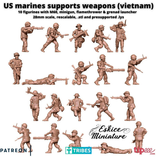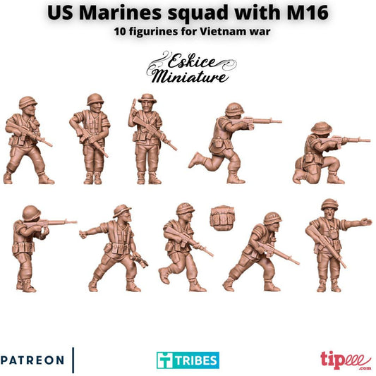 Vietnam War US Marines Squad with Support Weapons (10 models) Various Scales Historical Wargaming (US tariffs are pre-paid by us)
