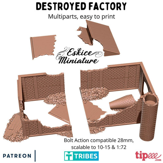 Wargaming Terrain Destroyed Factory Building Various Scales Historical Wargaming (US tariffs are pre-paid by us)