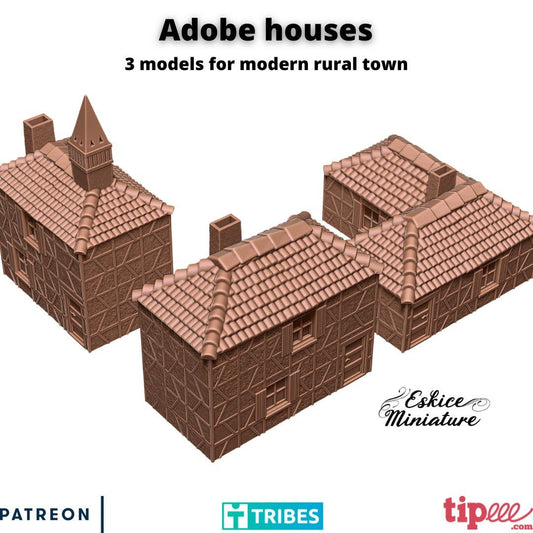 Wargaming Terrain Adobe Village Houses Set (3 buildings) Various Scales Historical Wargaming (US tariffs are pre-paid by us)